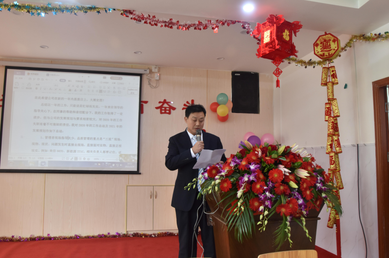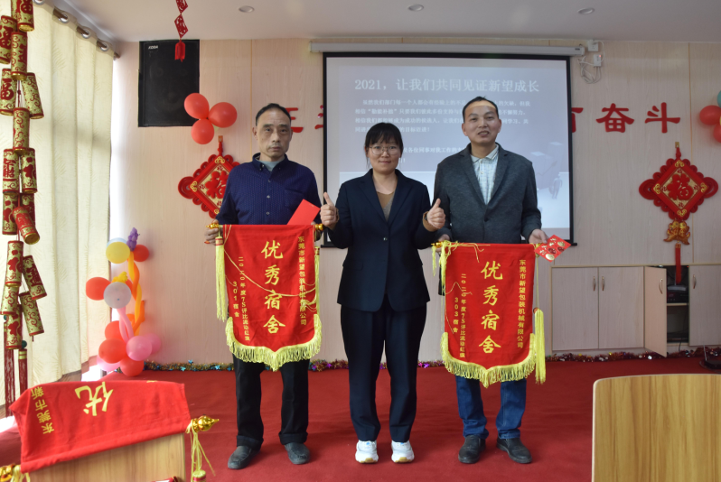 東莞市新望包裝機(jī)械有限公司2020年年度總結(jié)大會(huì)于2021年1月24日下午14:30在公司食堂隆重舉行。年終會(huì)議由行政部經(jīng)理張麗君主持。公司黨支部書記潘婉荷對(duì)黨支部成立5年以來的黨員活動(dòng)和黨建工作做了匯報(bào)和總結(jié)。公司運(yùn)營(yíng)管理中心和技術(shù)創(chuàng)新服務(wù)中心兩套班子成員緊靠大會(huì)主題“征途漫漫,惟有奮斗”進(jìn)行總結(jié)與探討,盤點(diǎn)過往成績(jī)與不足,為公司2021年戰(zhàn)略規(guī)劃獻(xiàn)計(jì)獻(xiàn)策,常委班子成員都發(fā)表了熱情洋溢的講話。公司總經(jīng)理羅永輝做了《前程無(wú)坦途 唯有奮起爭(zhēng)》的年度工作報(bào)告。