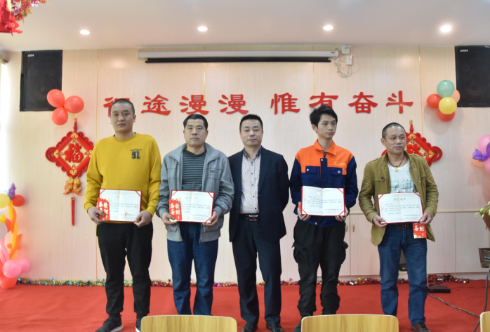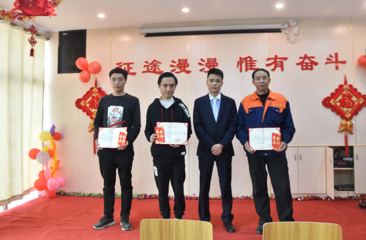 生產(chǎn)部經(jīng)理陽(yáng)專為周偉群、胡勇波、李加龍、唐江明頒發(fā)先進(jìn)個(gè)人獎(jiǎng)