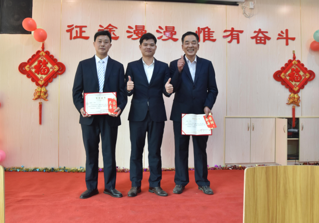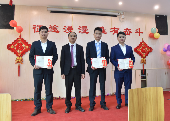 總助韋繼初為陽(yáng)專、胡賽、羅曉明頒發(fā)優(yōu)秀管理獎(jiǎng)